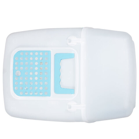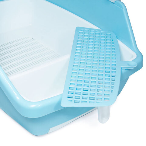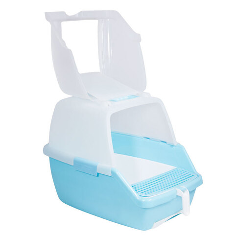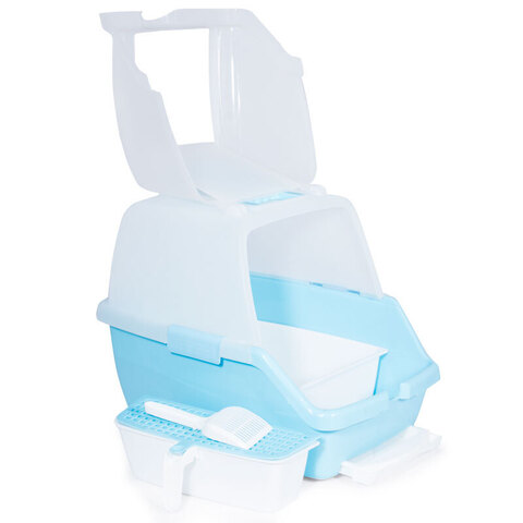 Закрытый туалет-бокс для кошек с совком и сеткой в комплекте. Это не просто стильный, но и функциональный аксессуар для владельцев пушистых питомцев. Такой туалет прекрасно удерживает запах благодаря сменному угольному фильтру, а закрывающаяся дверца предотвращает рассыпание наполнителя за пределы лотка. Дополнительное преимущество - выдвижной лоток, благодаря которому отпадет необходимость разбирать всю конструкцию для уборки. Туалет изготовлен из износостойкого пластика и легко моется под струей воды, а складная ручка удобна для переноски изделия. Угольный фильтр в комплекте. Цвет поддона: голубой. Цвет бокса: белый. Размер туалета: 550*400*420мм. Размер совка: 200*88*25мм. Подходит для крупных кошек.