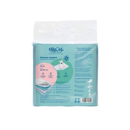 VitaVet Care пеленки гелевые с фикс. полосками 60*60 12 шт
