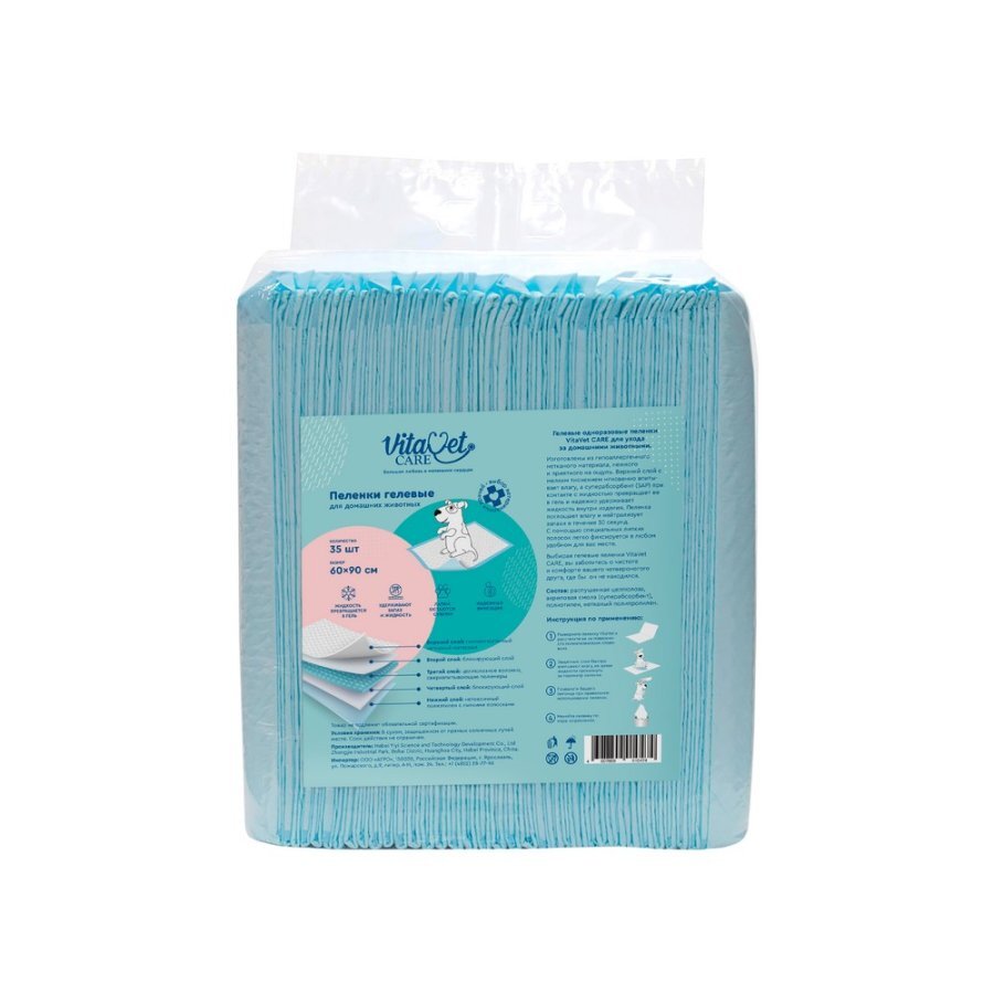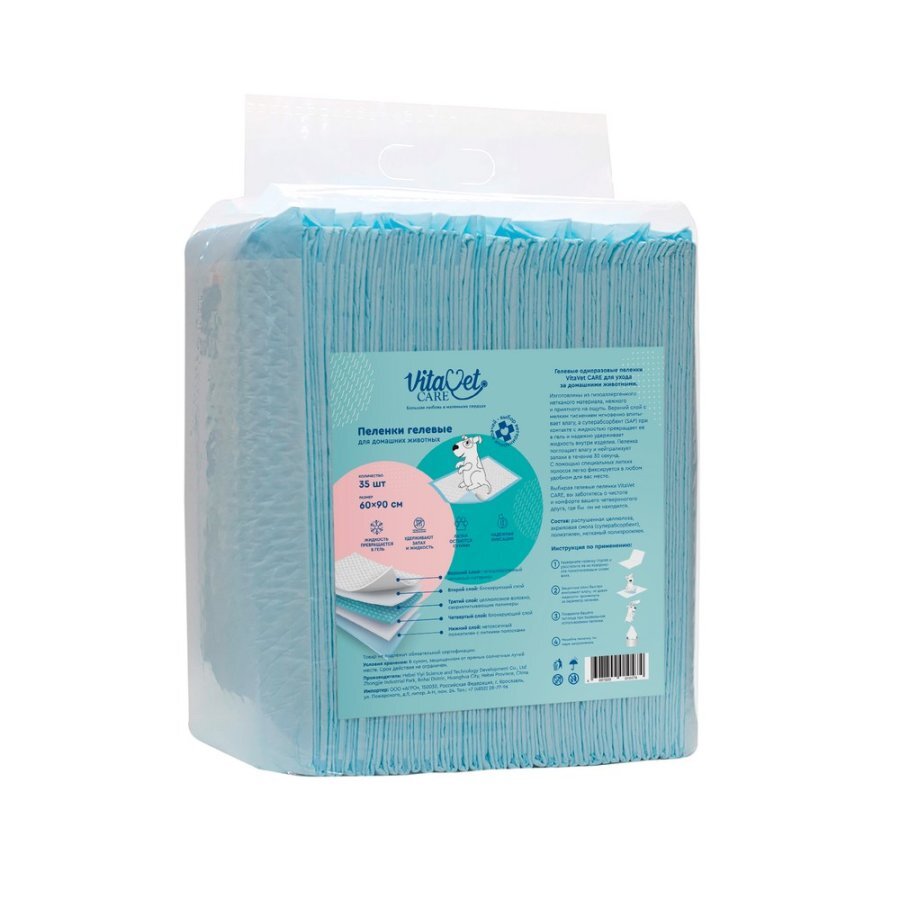 Незаменимые впитывающие одноразовые подстилки VitaVet CARE для ухода за домашними животными.