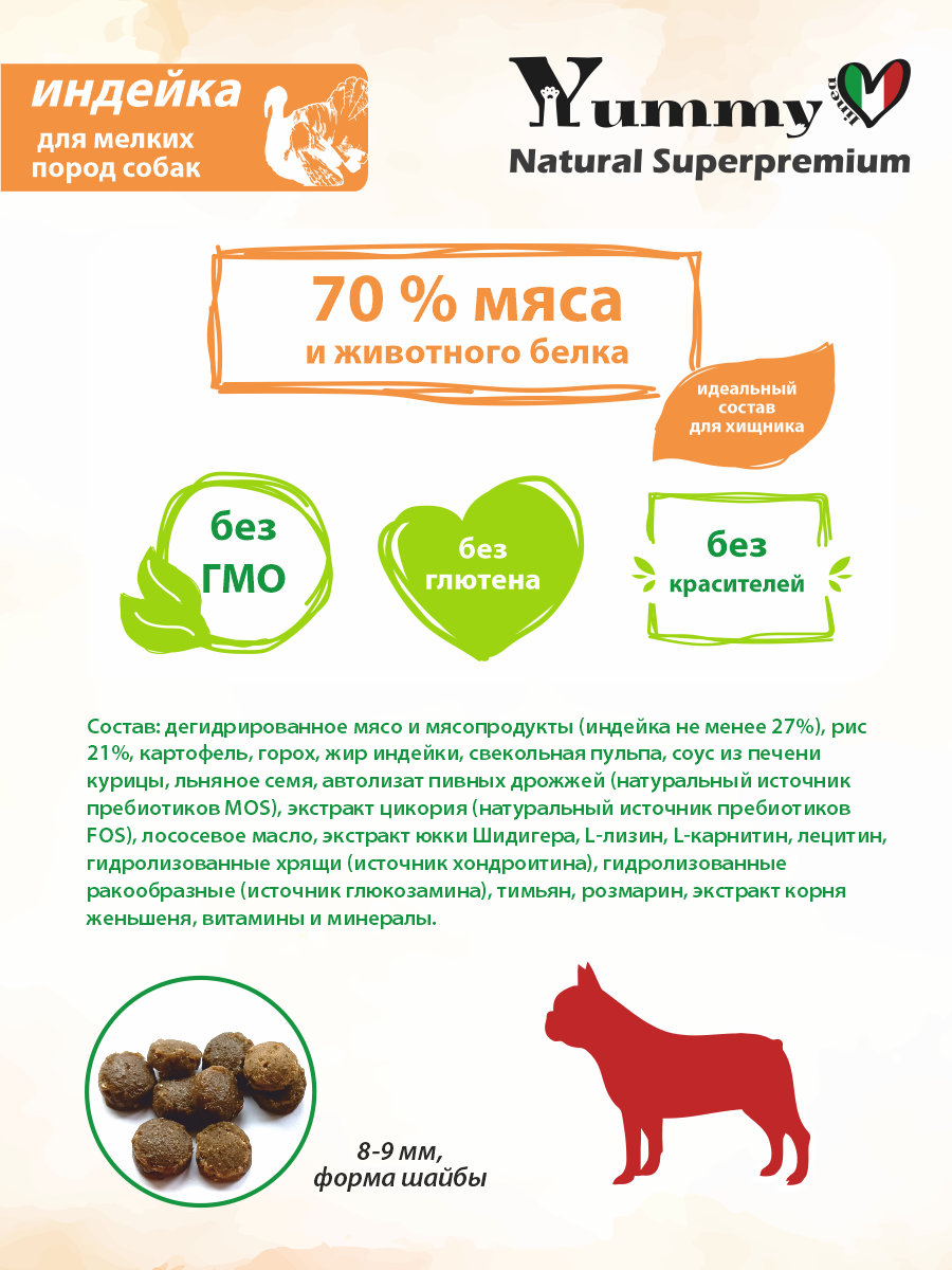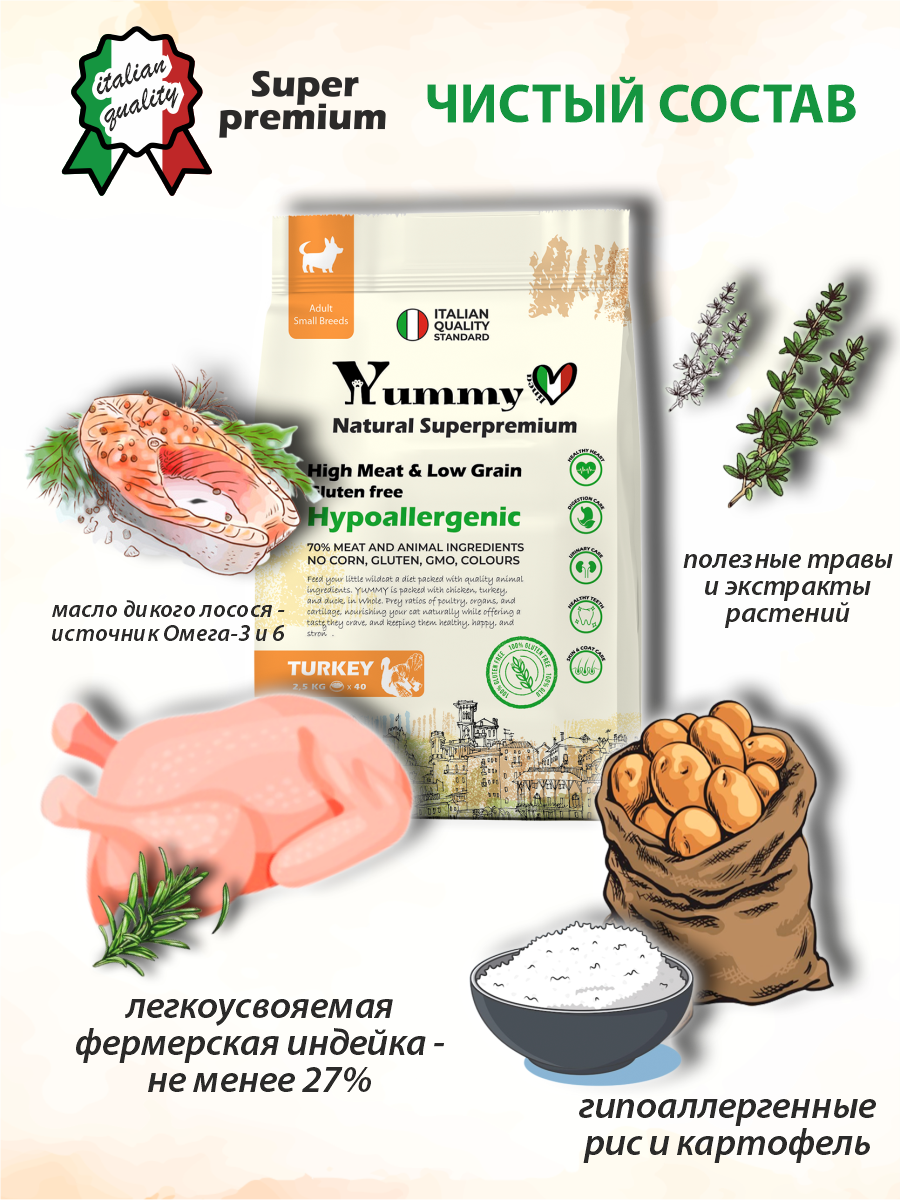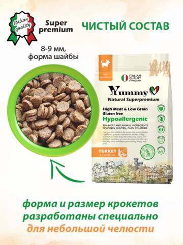Yummy Linea сухой корм для взрослых собак мелких пород (индейка) 2,5 кг