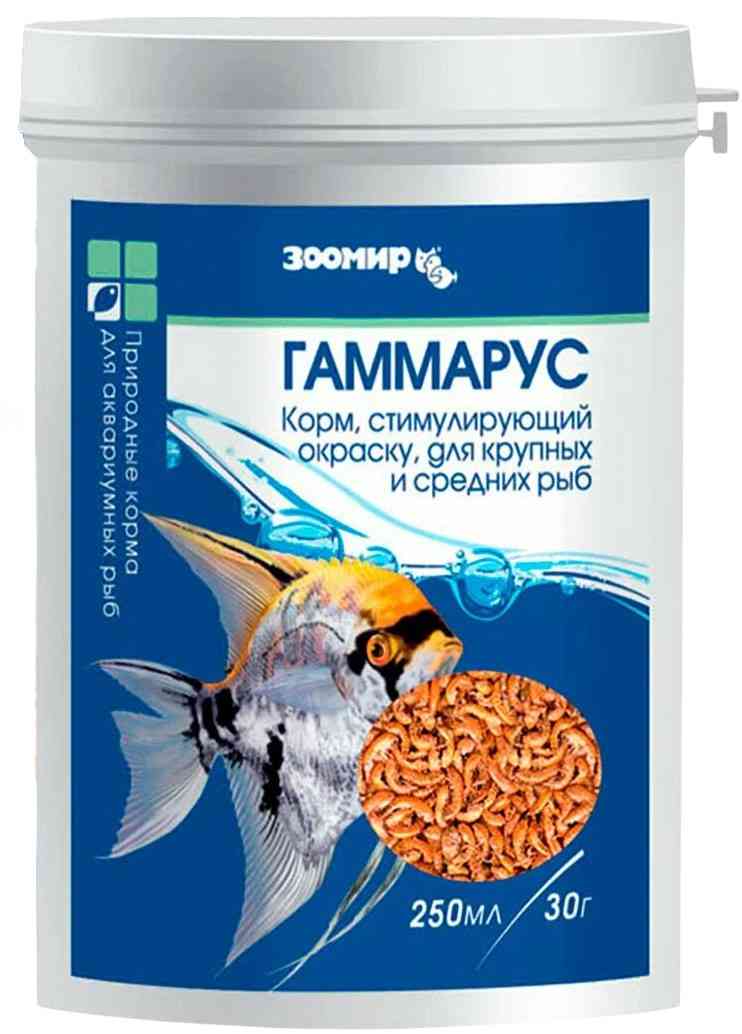 Гаммарус - пресноводные рачки, обитающие в крупных озерах Сибири. Отличается высоким содержанием веществ, укрепляющих здоровье рыб и повышающих интенсивность их естественной окраски. Рекомендуется для всех видов аквариумных рыб, как пресноводных, так и морских. Этот рачок является важной составляющей кормового рациона водяных и сухопутных черепах и других обитателей аквариумов и террариумов. Рекомендуется добавлять в рацион рыб и другие корма «ЗООМИР»: «Дафния», «Флэк», «Смесь», «Корм для тропических рыб», «Gran Gurman», «Корм выходного дня».