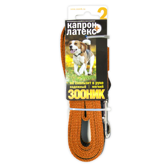 Поводок "Зооник" капроновый с латексной нитью. Инновационная разработка Российского производителя. Удобный в использовании: надежный, мягкий, не скользит в руке. Идеально подходит для прогулок и дрессировки собак.